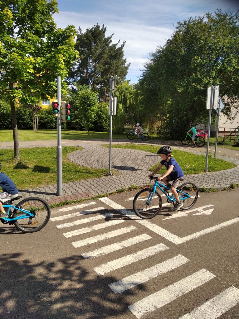 Ve středu 19.6. jsme jeli vlakem na dopravní hřiště do Blovic. Zde měly děti možnost si vyzkoušet jízdu na kole jako v opravdovém provozu a šlo jim to bravurně. Kdo nejezdil, dělal chodce. Jelikož nám spoj nenavazoval do Milče, vystoupili jsme ve Dvorci a šli 3 km do školy. Všichni si zaslouží velikou pochvalu.